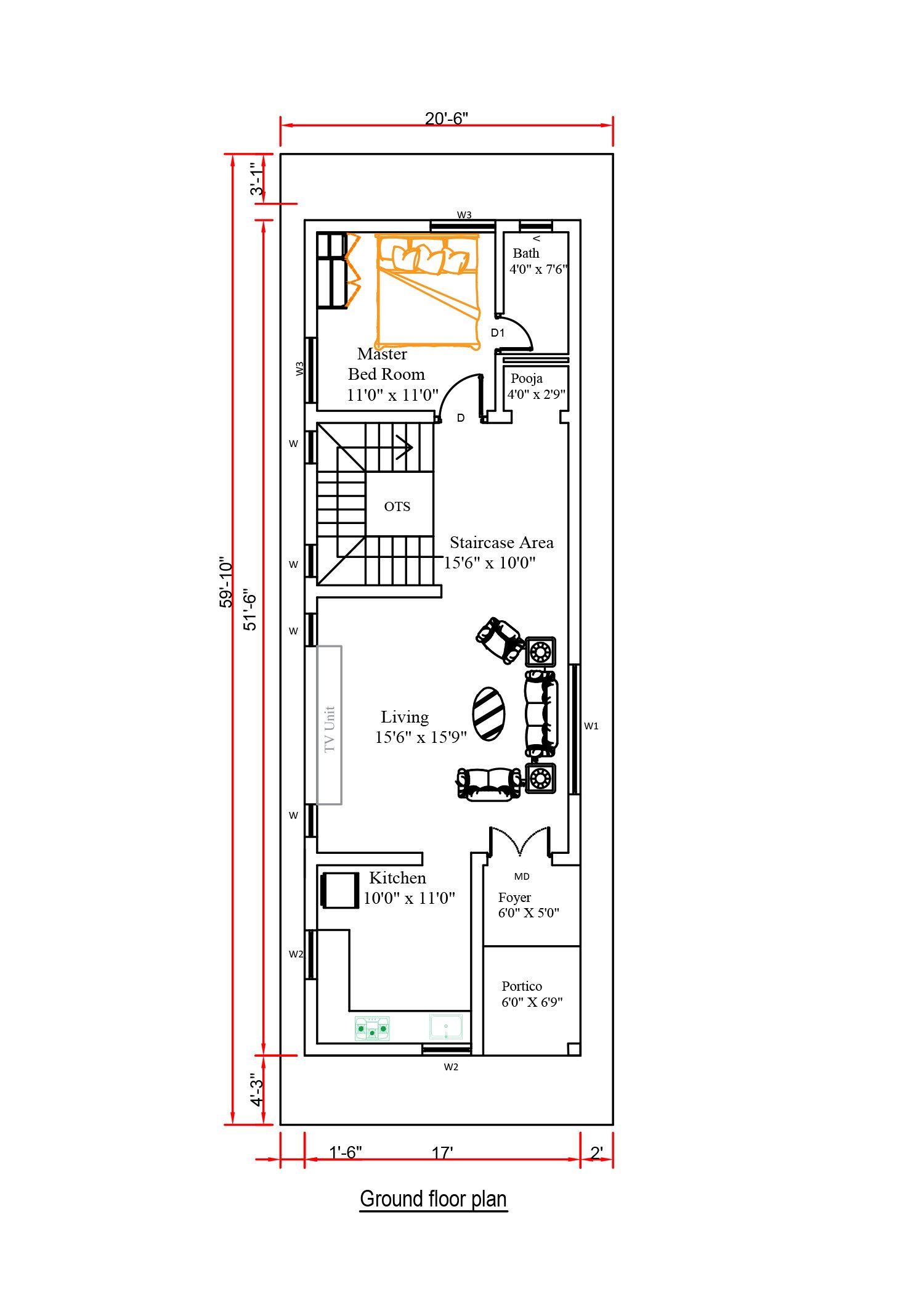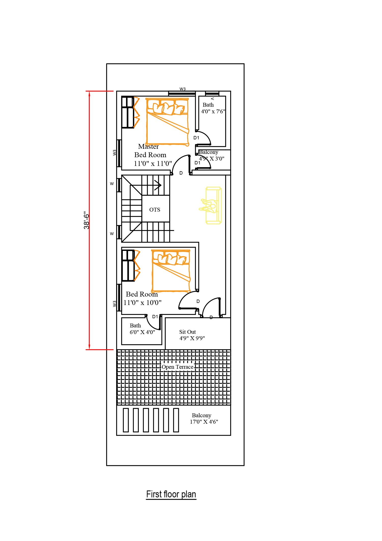 • 2 Feet wide loft in Bed Room and Kitchen Cupboard will be provided without frames/shutters.